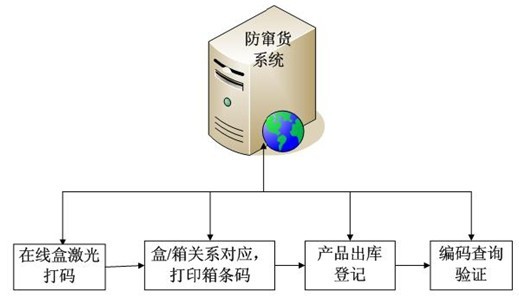 香雪醫(yī)藥,根據(jù)小盒裝箱規(guī)格,在系統(tǒng)中設(shè)定比例參數(shù),利用激光機在每個小盒上打印一組防偽編碼,當打印完一整箱的防偽編碼數(shù)后,控制計算機上的打碼系統(tǒng)就驅(qū)動與之相連的條碼打印機打印一個條形標簽碼,箱條碼與該箱內(nèi)所有的防偽編碼形成了一一對應(yīng)的關(guān)系,在按照規(guī)格裝箱時,需嚴格按先后順序裝箱和貼標。這樣,箱條形碼和盒上的防偽碼建立了對應(yīng)關(guān)系。